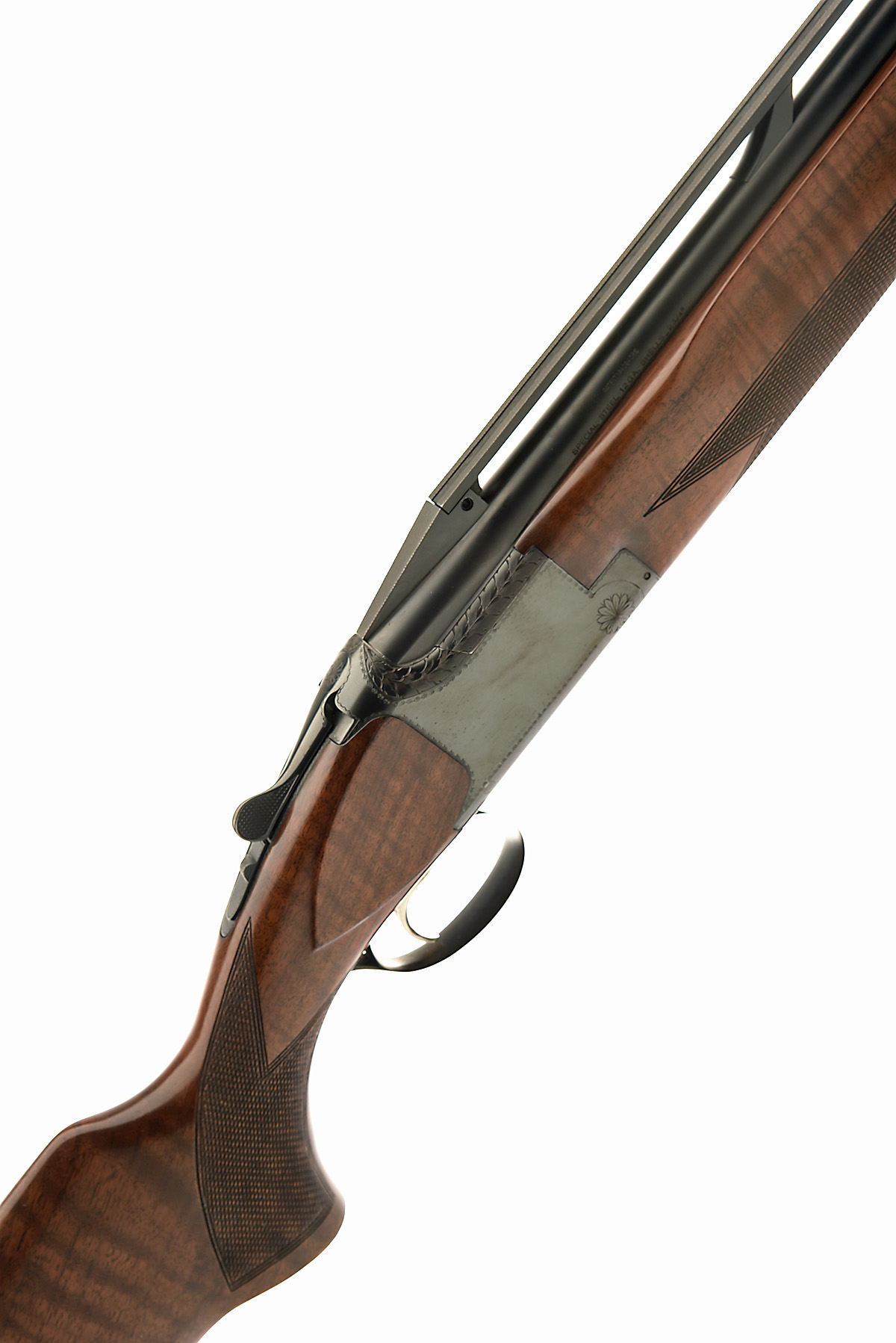 BROWNING ARMS COMPANY 12-BORE 'SUPER TRAP 80' SINGLE-TRIGGER OVER AND UNDER EJECTOR, serial no. 8M3RP02001, dated 1978, 30in. nitro barrels with no mid-rib and raised 12mm ventilated matt top-rib, 2 3/4in. chambers, bored approx. 1/2 and 3/4 choke, hold-open toplever, manual safety with integral barrel selector switch, border engraving, gold-inlaid with the model designation, 14 1/2in. pistolgrip stock including 1in. ventilated rubber recoil pad, weight 8lb.
