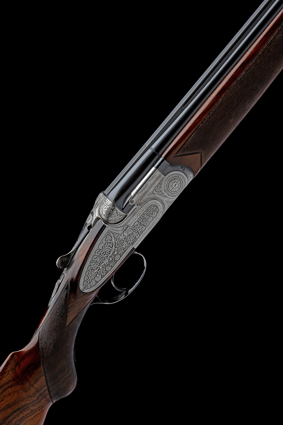 dated 1968, 28in. nitro barrels (choke reproof in 2018) with 8mm ventilated matt top-rib, 2 3/4in. chambers, Teague multichokes (with spares), hold-open toplever, automatic safety, border and floral scroll engraving, brushed finish, 14 1/2in. semi-pistolgrip stock (cracked at hand) including 3/4in. rubber recoil pad, weight 7lb. 9oz.