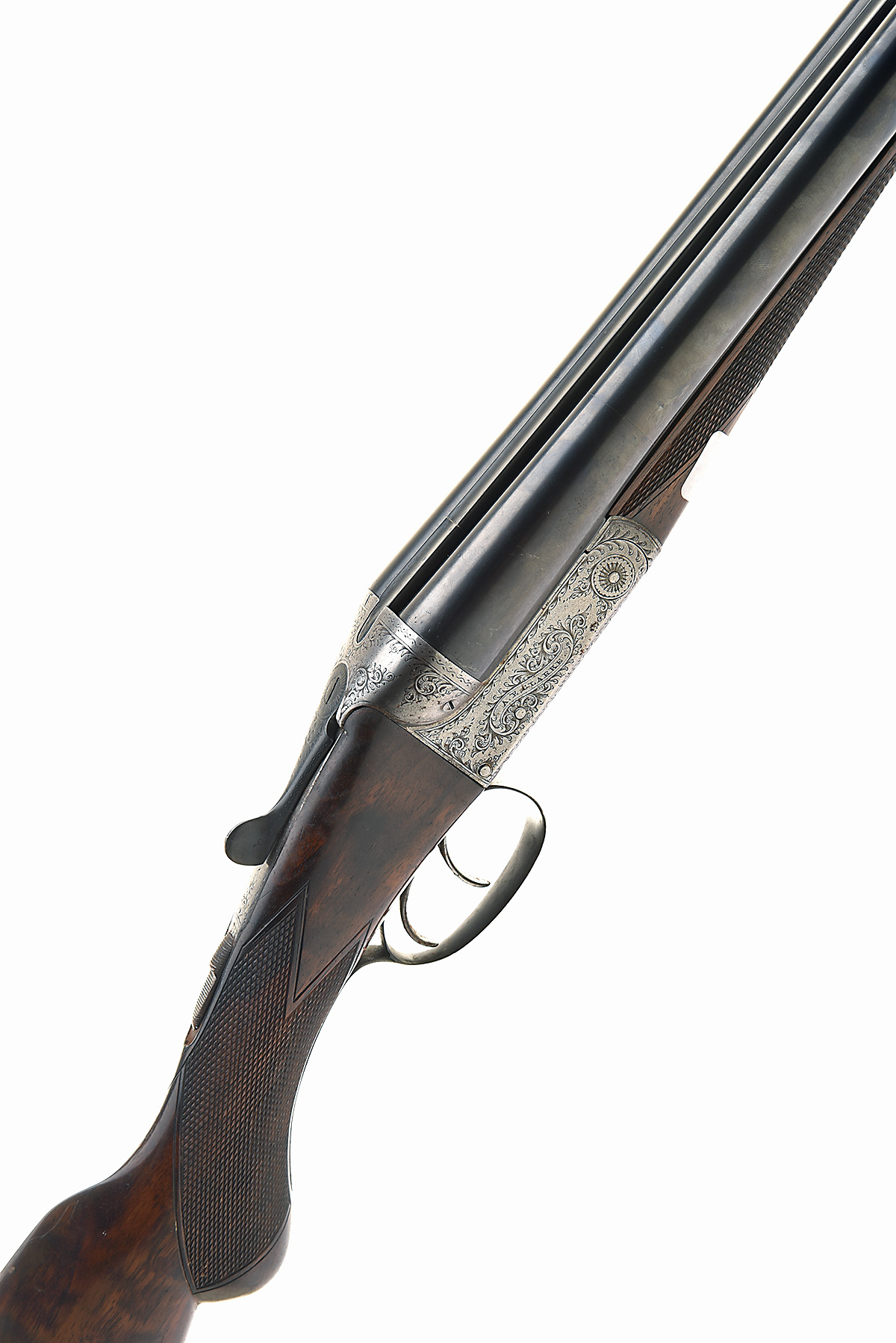 A.E. CLARKE 12-BORE BOXLOCK NON-EJECTOR, serial no. 36845, 28in. sleeved nitro barrels, 2 3/4in. chambers, bored approx. imp. cyl. and 1/4 choke, treble-grip action, automatic safety, border and scroll engraving, 14 1/4in. semi-pistolgrip stock