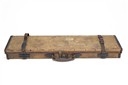 A CANVAS AND LEATHER SINGLE GUNCASE,