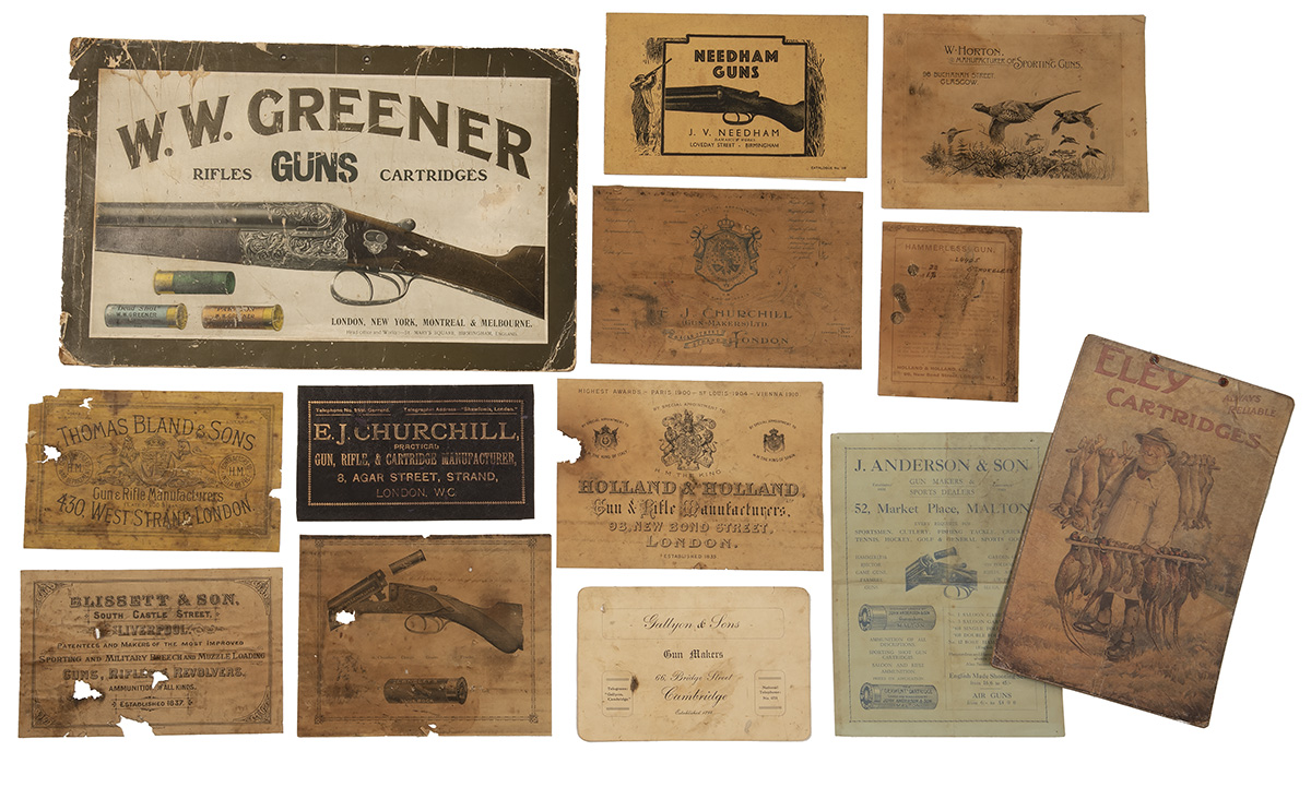 A QUANTITY OF GUNMAKERS ADVERTISING PARAPHERNALIA AND GUNCASE LABELS, comprising: