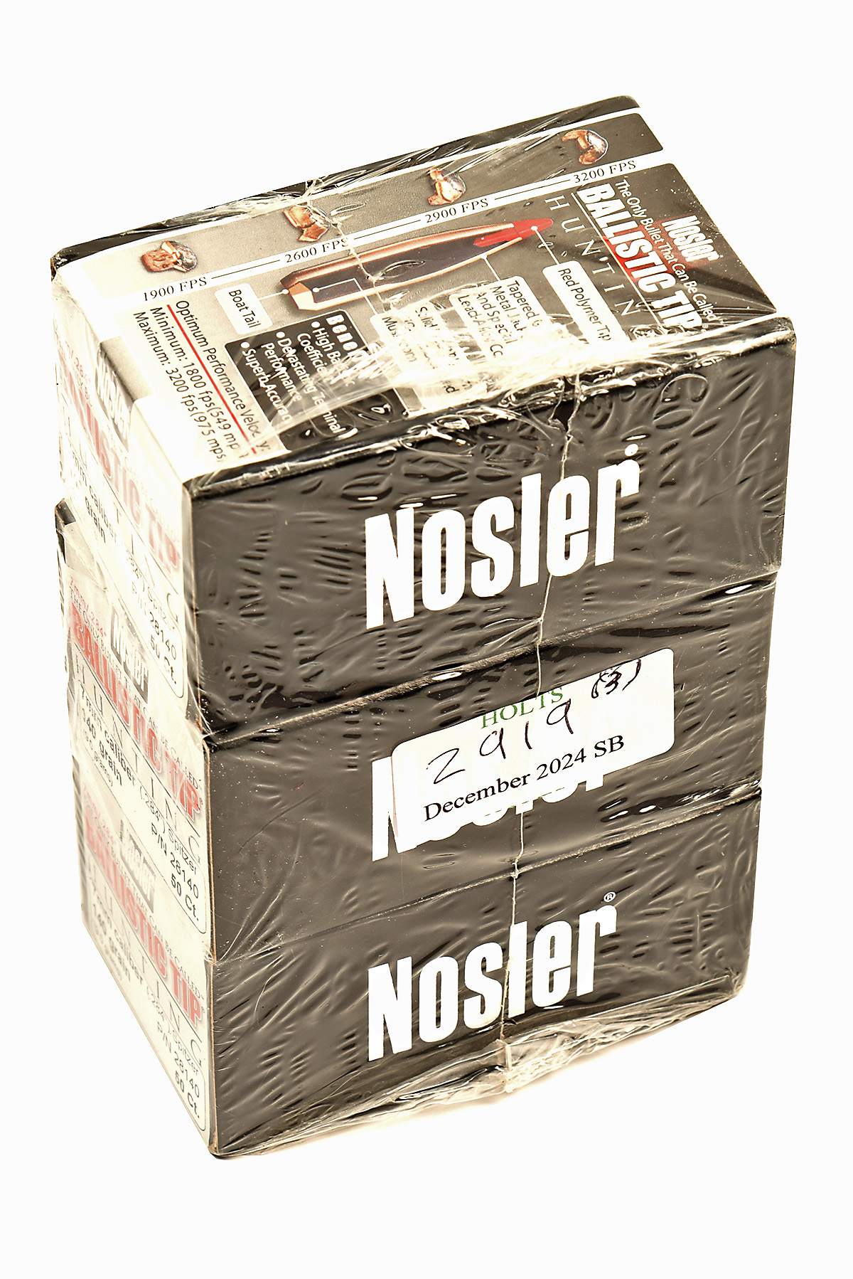 THREE UNUSED 'NOSLER' 7MM CALIBRE SPITZER BULLET HEADS IN BOXES, approx. 150 No28140, ballistic tip hunting bullet heads, (3)