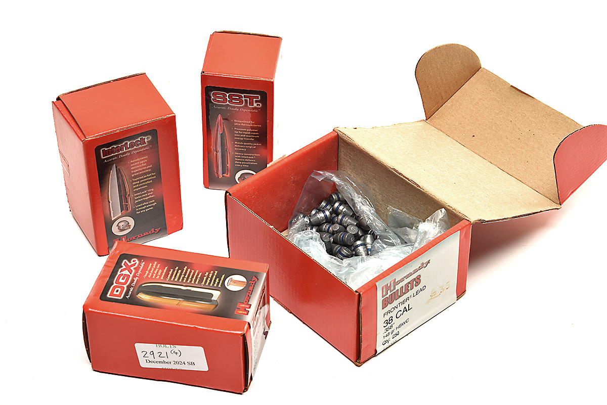 FOUR ASSORTED HORNADY BULLET HEADS IN BOXES, (4)