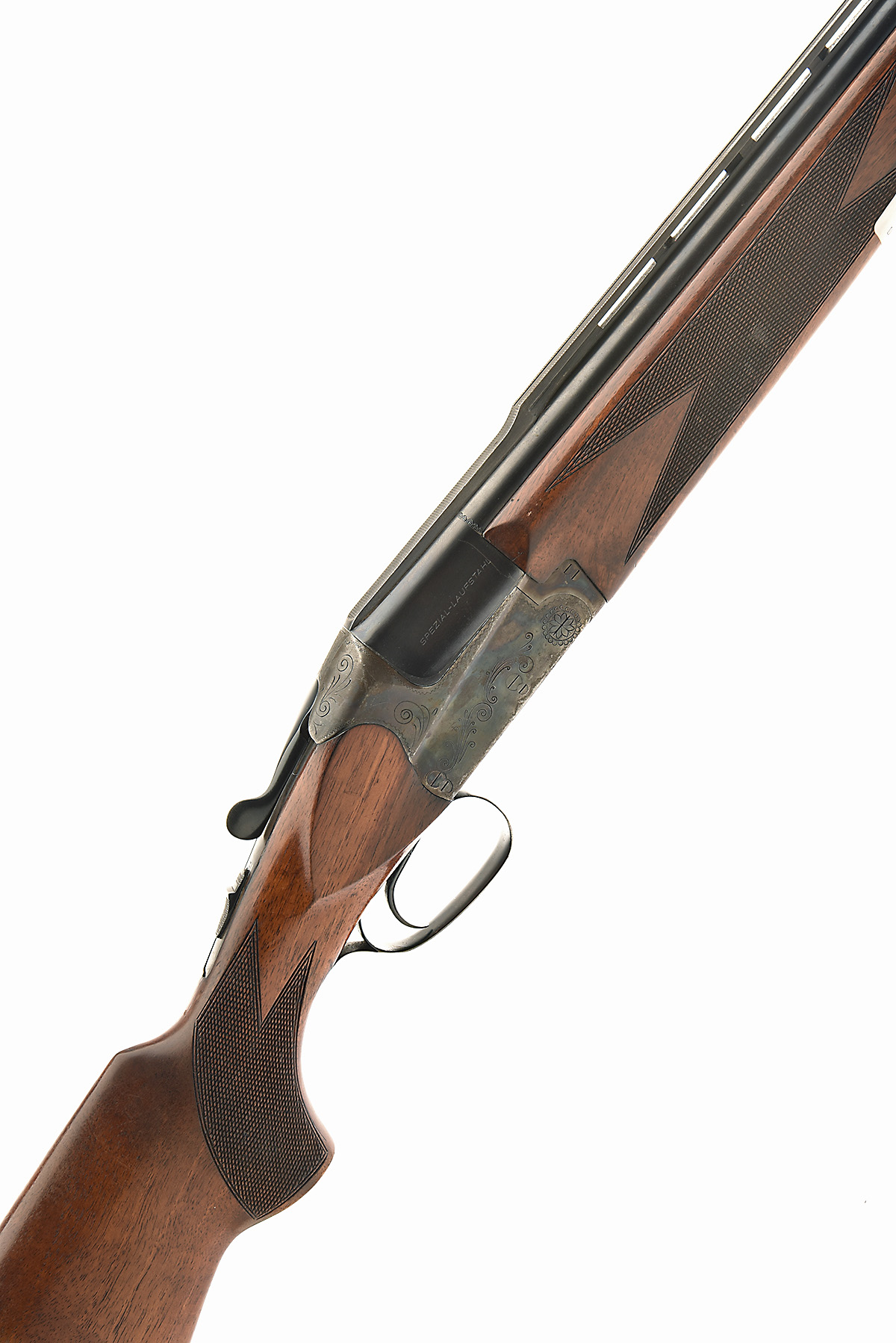 SIMSON -SUHL 12-BORE SINGLE-TRIGGER OVER AND UNDER EJECTOR, serial no. 193377, for 1988, 28in. nitro barrels with 11mm raised ventilated matt top rib, 2 3/4in. chambers, bored approx. 1/4 and full choke, automatic safety with engraved 'S' detail, border and scroll engraving, retaining some original colour-hardening and finish, 14 1/4in. pistolgrip stock including rubber recoil pad, some splitting to the fore-end wood, weight 7lb. 5oz.