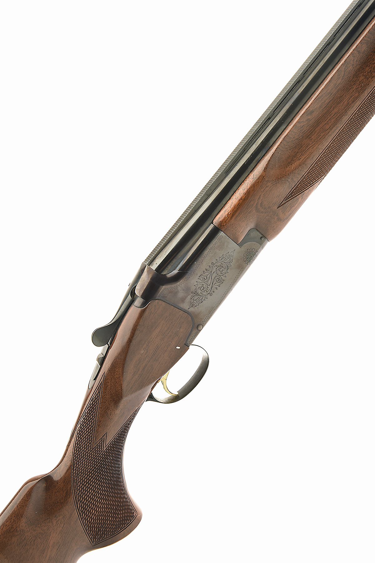 B.C. MIROKU 12-BORE '3800' SINGLE-TRIGGER OVER AND UNDER EJECTOR, serial no. 1130421, circa 1977, 30in. nitro reproved barrels, 2 3/4in. chambers, bored approx. full choke in both, hold-open toplever, manual safety with integral barrel selector switch, gold-washed single trigger, border and partial scroll engraving, blacked finish, 14 1/4in. pistolgrip stock with raised comb, including 1in. ventilated rubber recoil pad, weight 7lb. 13oz., in its makers carton