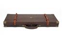 A BRASS-CORNERED OAK AND LEATHER DOUBLE GUNCASE,