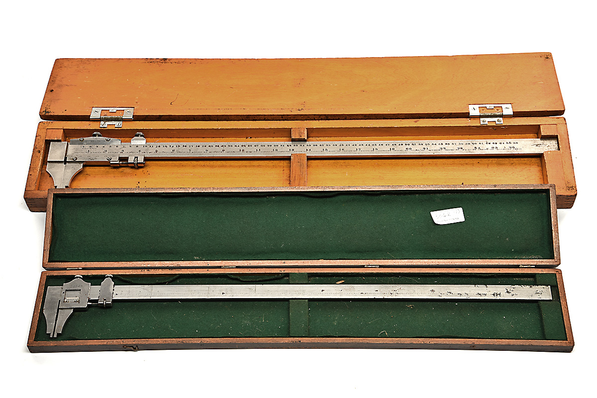 TWO VINTAGE LARGE VERNIER CALIPERS IN ORIGINAL CASES, (2)