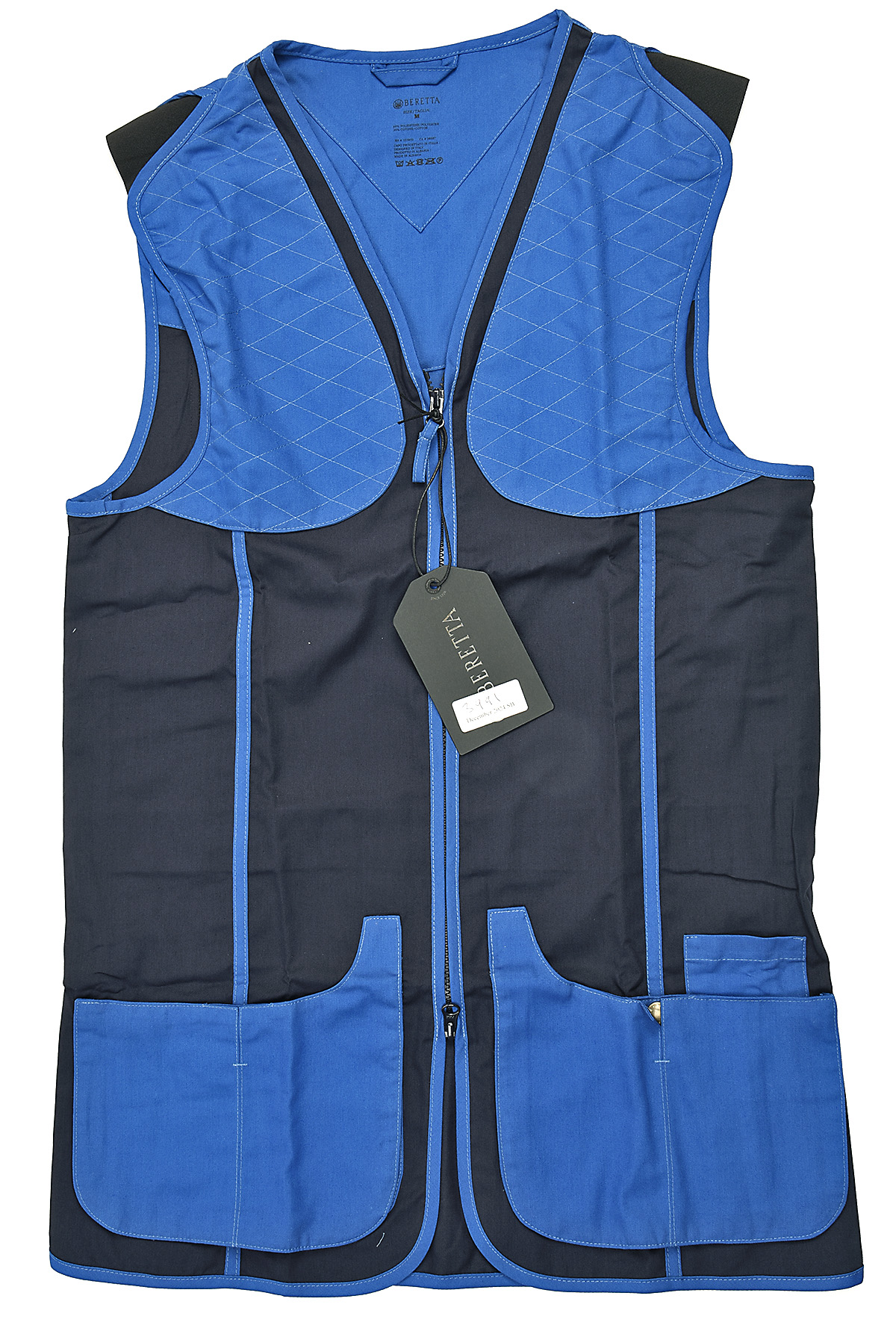 A UNUSED 'BERETTA SHOOTING COTTON' VEST, No. GT591, in blue total eclipse, size M