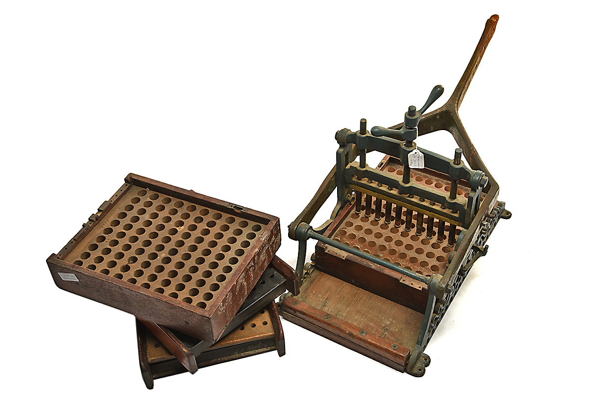 A VICTORIAN ERSKINE TYPE RELOADING MACHINE, with cast iron press and four trays