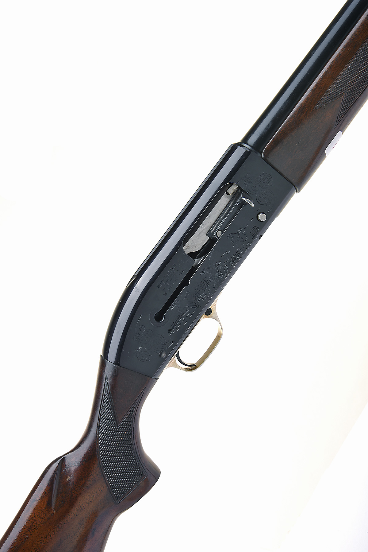 WINCHESTER 12-BORE 'M59 WIN-LITE' SEMI-AUTO SHOTGUN, serial no. 48874, circa 1962, restricted magazine, 28in. nitro reproved (in 2024) Win-Lite glass fiber barrel, 2 3/4in. chamber, bored approx. 3/4 choke., manual push-button safety, aluminium action, acanthus scroll and naive game scene engraving, blacked and brushed finish, 15 1/4in. pistolgrip stock including ventilated rubber recoil pad, weight 7lb. 3oz, leather sling