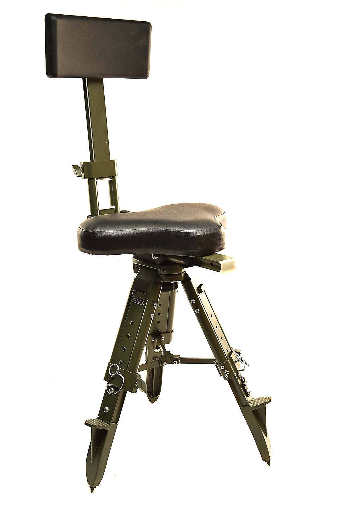 A 'IDLEBACK' SHOOTING SEAT, 3 adjustable legs with fitting for rifle rest (not included) with 'IDLEBACK' bag