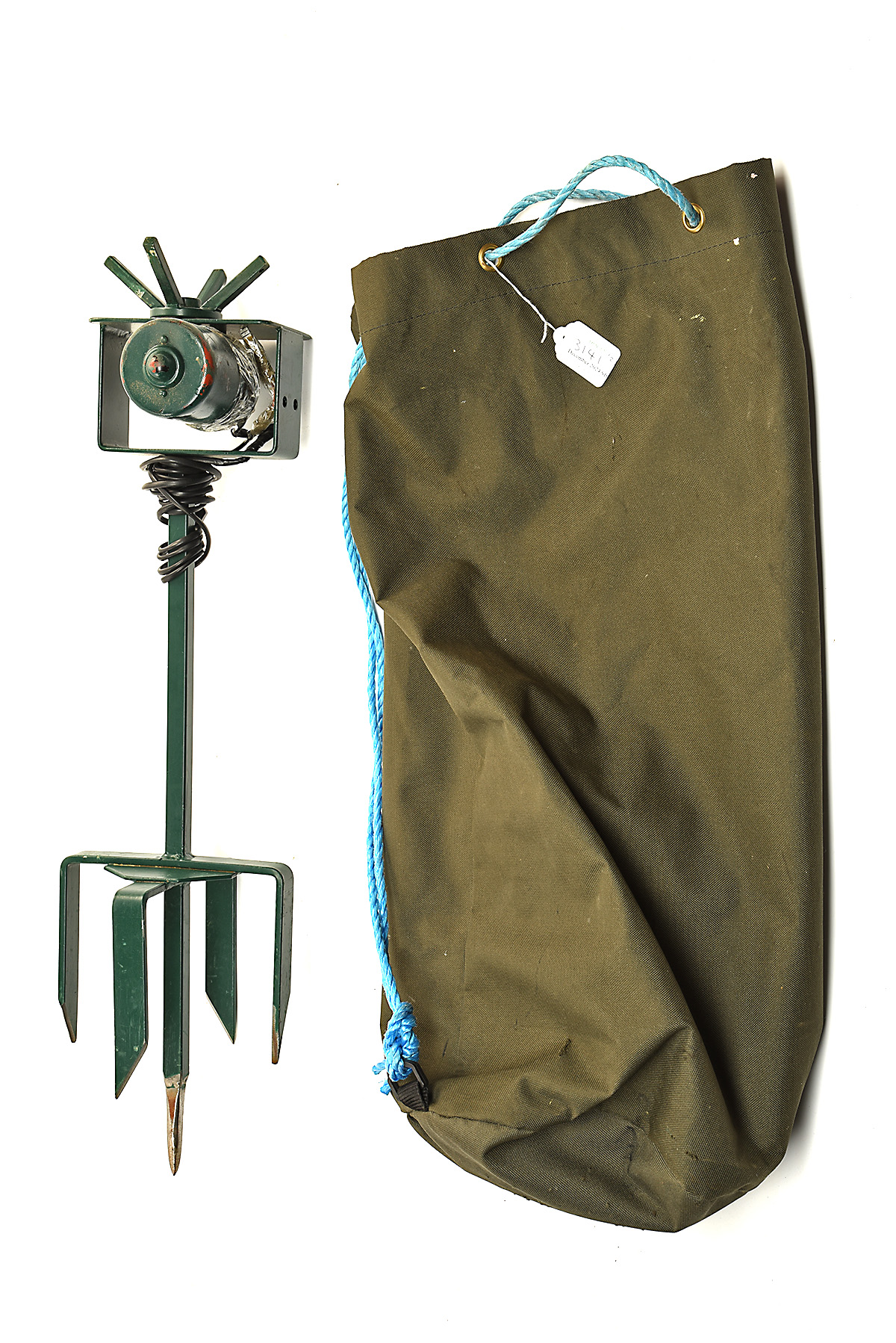 A HEAVY DUTY 'PIGEON MAGNET' ROTARY MACHINE, with remote and canvas bag, includes decoy polls (untested) (2)