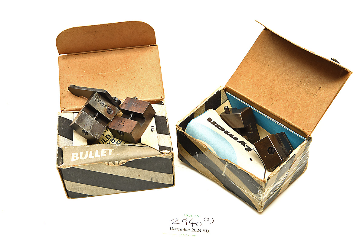 TWO 'LYMAN' MOULD BLOCKS IN ORIGINAL BOXES, 1 single cavity No. 358429 .38 calibre bullet mould, 1 single cavity No. 454RB .454 calibre ball mould (2)