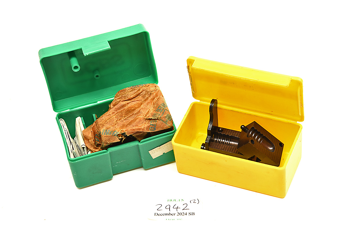 'RCBS' & 'LYMAN' .45 CALIBRE BULLET MOULDS IN CASES, 'RCBS' No. 82051. 45-300-FN 300 grain double cavity, 'LYMAN' No. 457124 .45 385 grain single cavity (2)