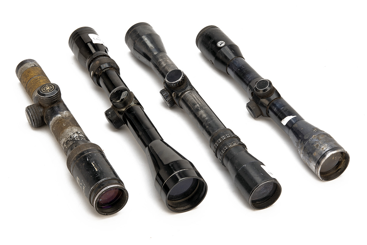 FOUR VARIOUS TELESCOPIC SIGHTS, comprising of a Nikko Stirling 3-9x40, a Carl Kahles Helia L 1.1-4.5x2, a Pecar 3-7 Variable, a Supra 4x36 telescopic sights, untested