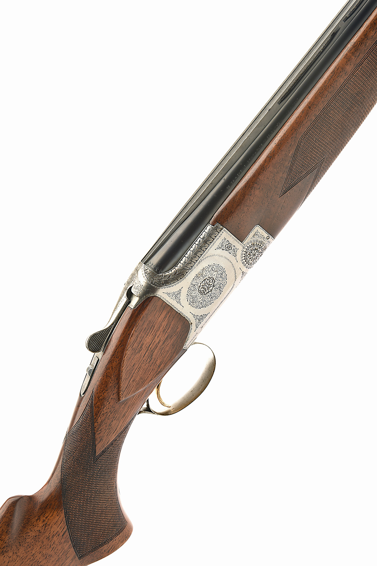 FABRIQUE NATIONALE 12-BORE 'B1' SINGLE-TRIGGER OVER AND UNDER EJECTOR, serial no. 50616 S75, for 1975, 27 1/2in. (70cm) nitro barrels with 12mm ventilated matt top-rib, 2 3/4in. chambers, bored approx. 1/4 and 3/4 choke, hold-open toplever, manual safety with integral barrel-selector switch, gold-washed trigger, acanthus scroll engraving with floral bouquets, bright finish, 14 1/4in. figured pistolgrip stock including 1/2in. recoil pad, weight 7lb. 1oz.