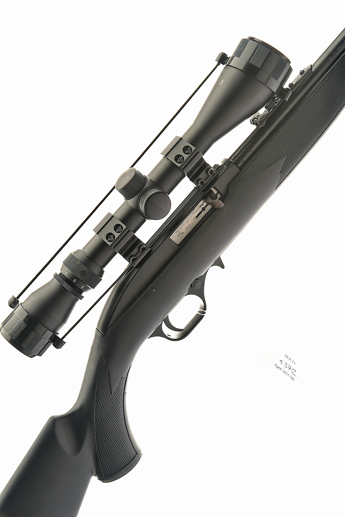 MAGTECH .22 L.R. ' MODEL 7022' SELF-LOADING SPORTING RIFLE, serial no. ELD3381708, circa 2012, 18in. nitro barrel, threaded at the muzzle, ramp-mounted bead fore-sight, folding leaf rear-sight, fitted with an Edgar Brothers 3-9x40 telescopic sight, manual safety, detachable magazine missing, synthetic pistolgrip stock