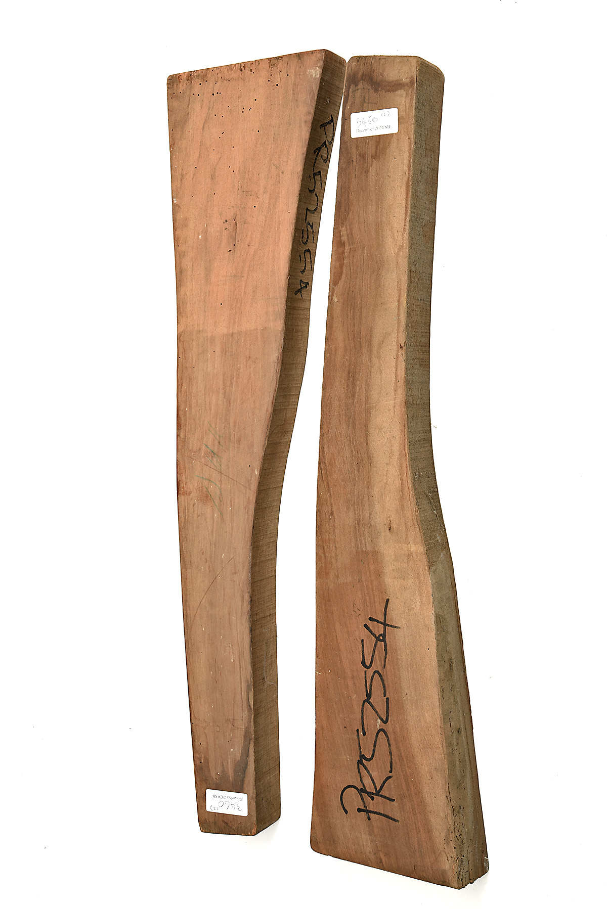 TWO WALNUT STOCK BLANKS, approx 29 (length) x 2 7/8 (fore-end) x 6 (heel) x 2 1/2in. (width)