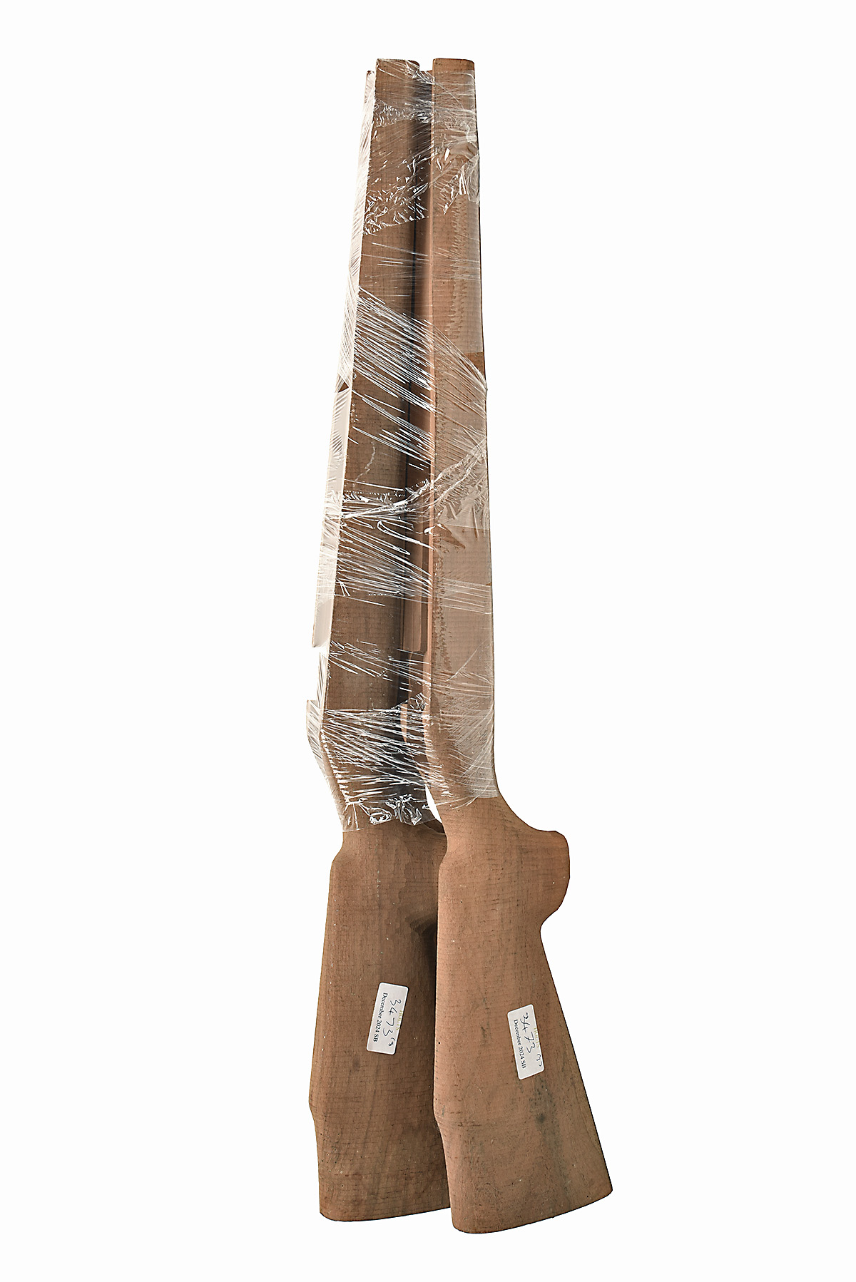 THREE UNFINISHED WOODEN RIFLE STOCKS,