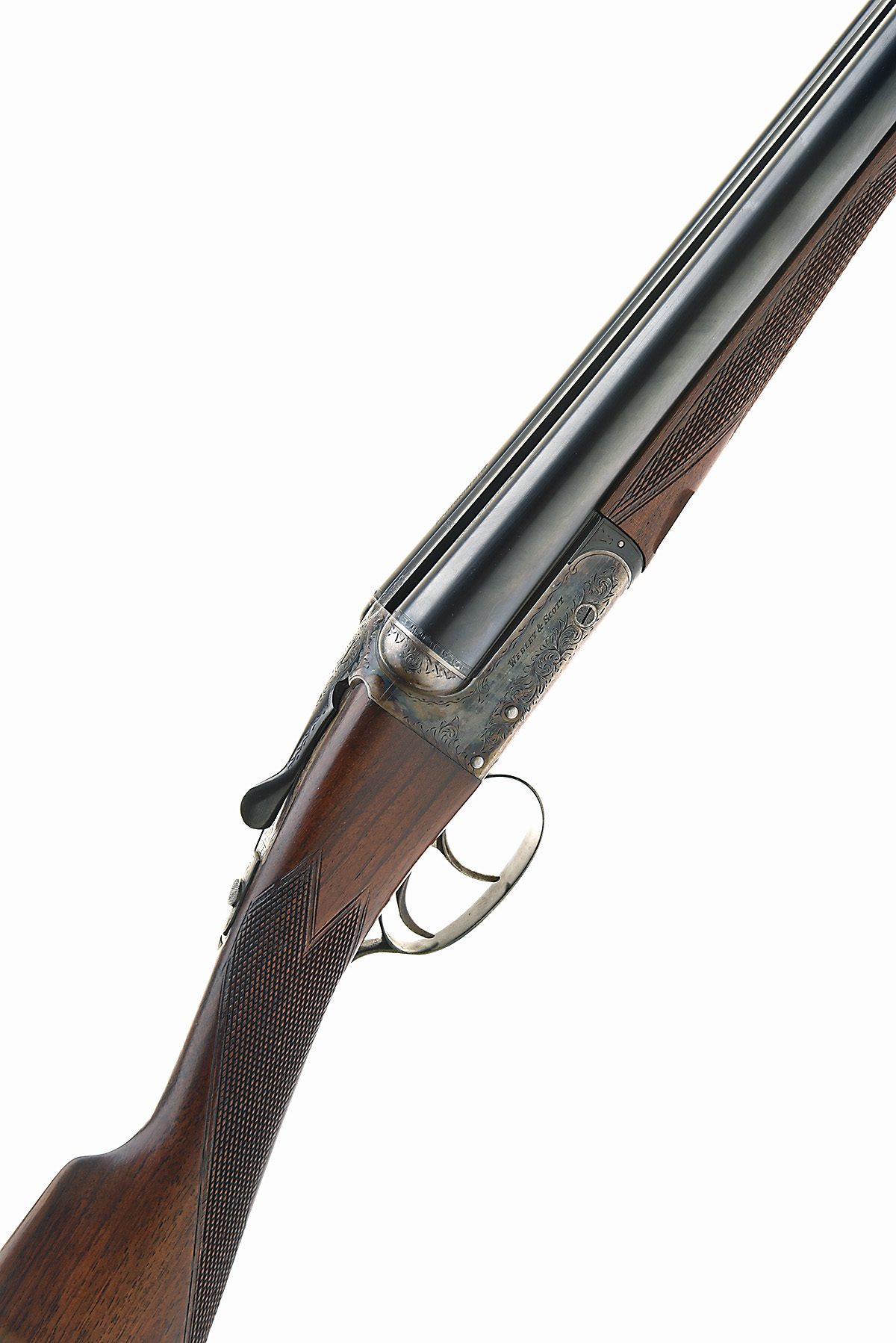 WEBLEY & SCOTT 12-BORE 'MODEL 700' BOXLOCK EJECTOR, serial no. 136711, dated 1958, 28in. nitro barrels, 2 3/4in. chambers, bored approx. 1/4 and 1/2 choke, automatic safety, border and acanthus scroll engraving, retaining much original colour-hardening and finish, 15 1/2in. stock including 3/4in. rubber recoil pad, weight 6lb. 11oz.