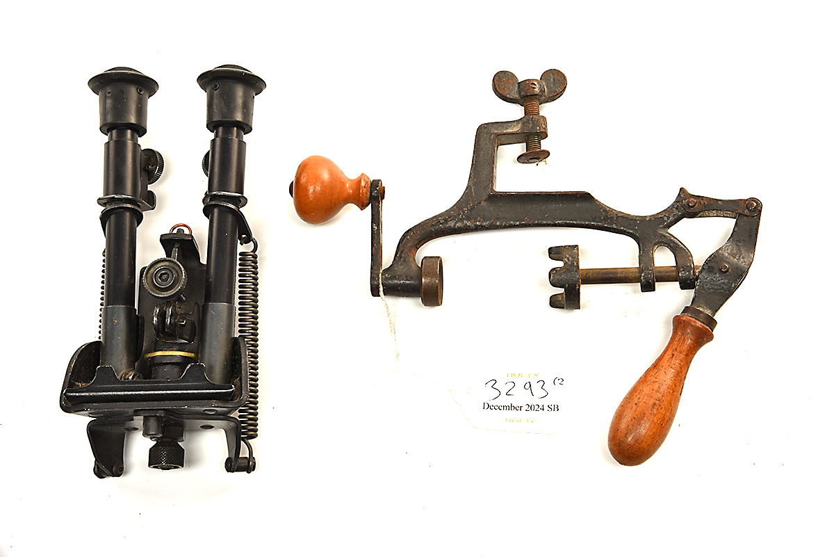 A HARRIS S-BR BIPOD & A VINTAGE 16-BORE ROLL TURNER OVER TOOL, (2)