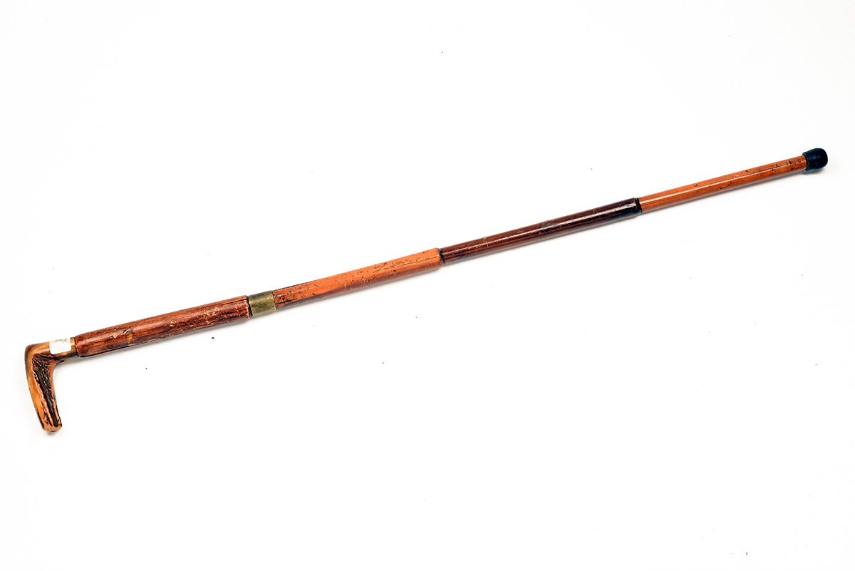 A 7mm (W/S) WALKING-STICK SHOTGUN, UNSIGNED, no visible serial number, probably Belgian circa 1890, with natural cane covering and stag handle, 34 1/4in. overall, action at fault