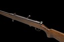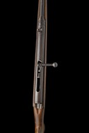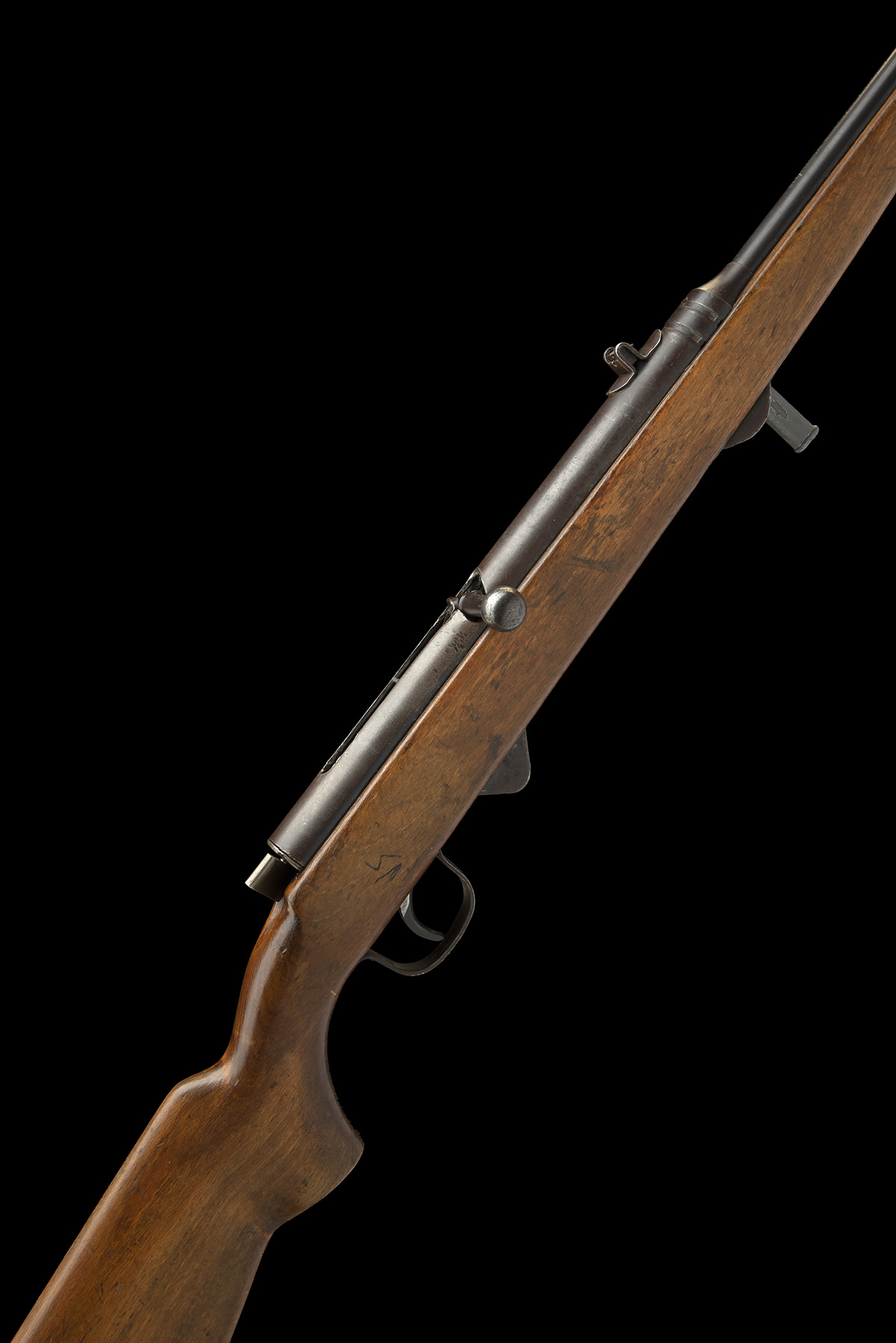 circa 1951, with 16 1/2in. fixed barrel, ramp fore-sight, elevating notch rear-sight to front of receiver, straight bolt-handle running in a central slot to top, flag safe to rear, beech half-stock, aperture for detachable magazine in central underside of fore-end (ten shot magazine included), traces of finish
