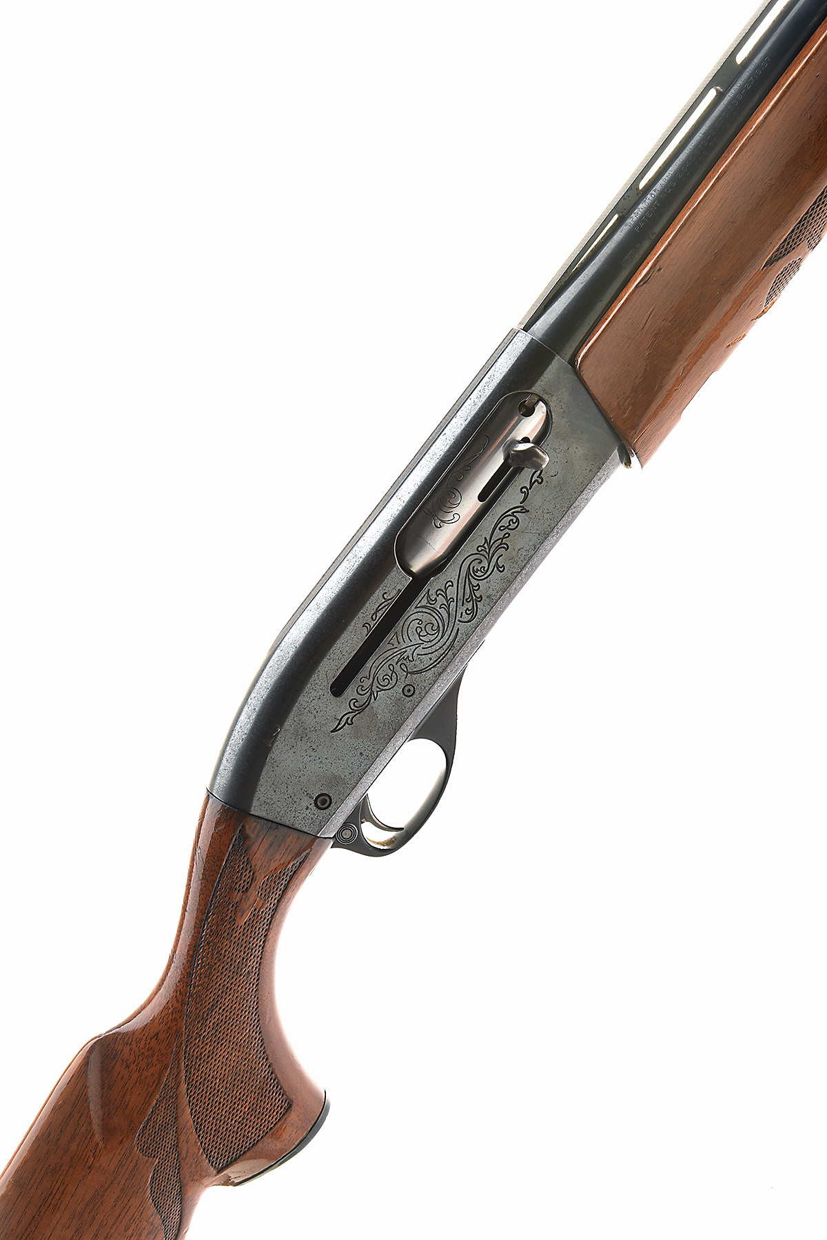REMINGTON 20-BORE 'MODEL 1100' SEMI-AUTO SHOTGUN, serial no. L151769X, for 1990, restricted magazine, 25 1/4in. nitro barrel with 7mm ventilated matt rib, 2 3/4in. chamber, bored approx. true cyl., manual push-button safety, blacked action with acanthus scroll engraving, 13 1/2in. ornately chequered pistolgrip stock including ventilated rubber recoil pad, weight 7lb. 6oz.