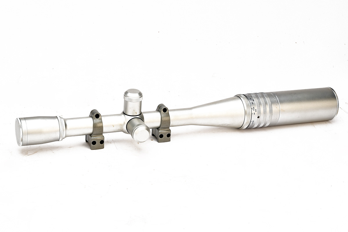 A LIGHTLY USED 'WEAVER' MICRO TRAC CT36 36X40 TARGET SCOPE, serial no. Y10569, with scope rings, lens cover, in silver, fine crosshair reticle, untested