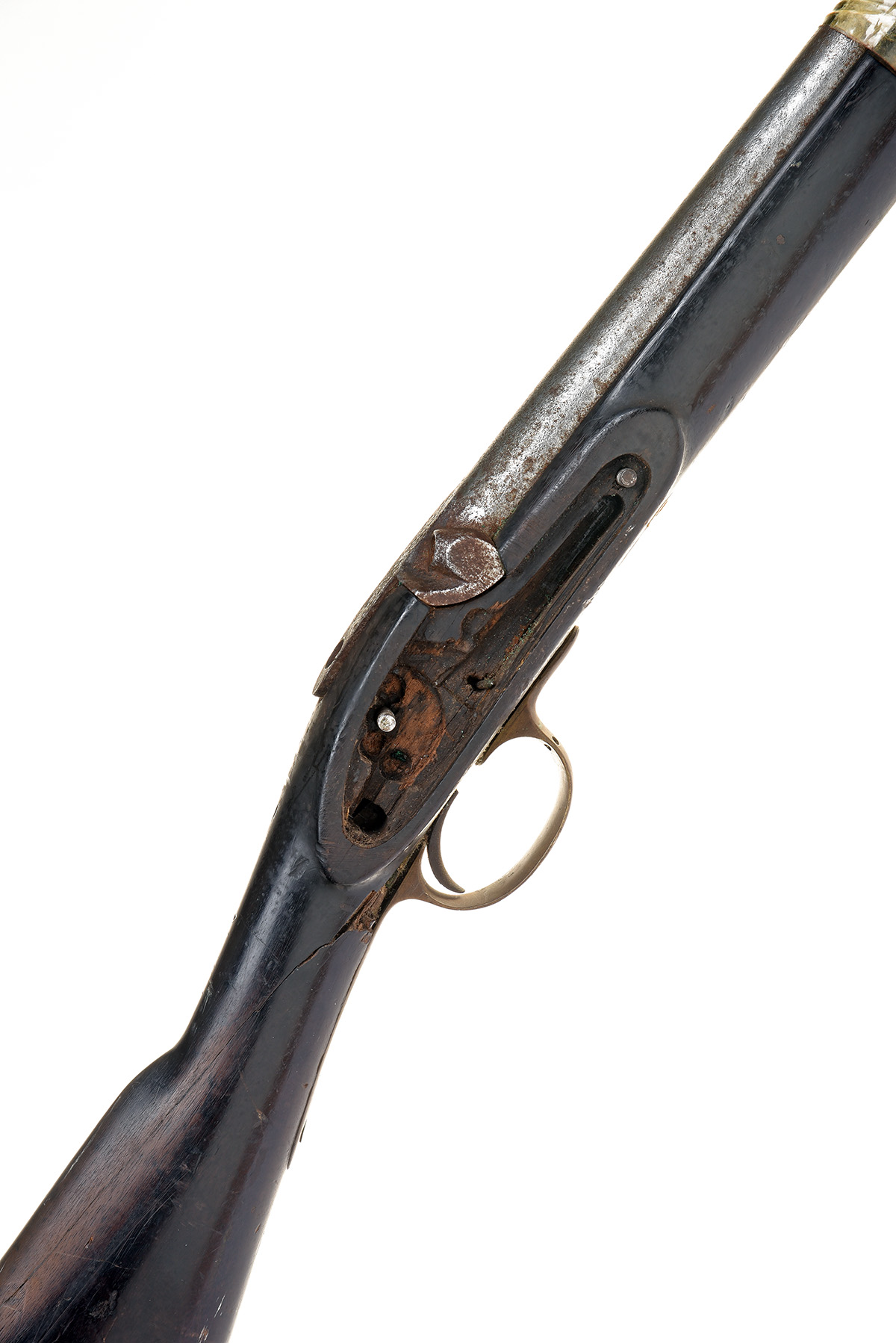 THE MAJOR PARTS OF A .650 ENFIELD-STYLE CARBINE, no visible serial number, with 24in. barrel, missing lock and some furniture parts, full-stock (cracked), finish worn
