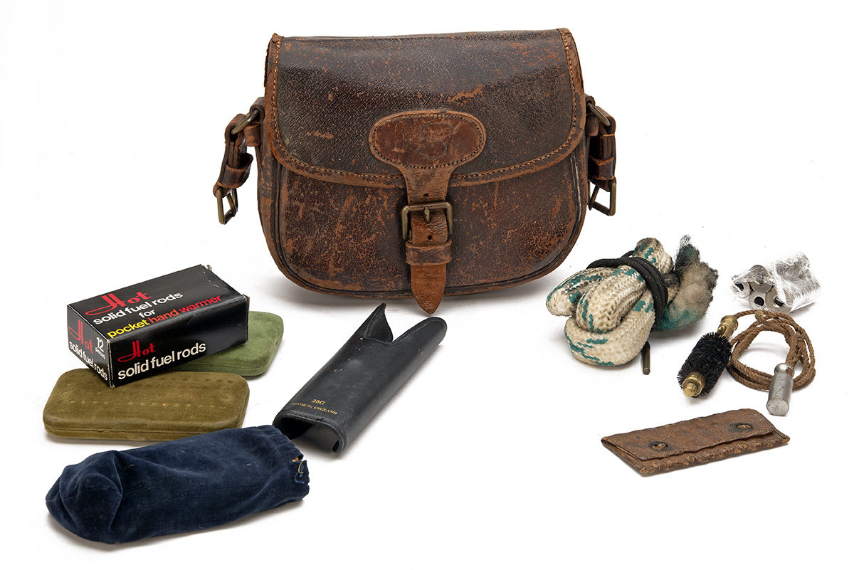 all held in a vintage size 50 pigskin cartridge bag (missing strap) (qty)