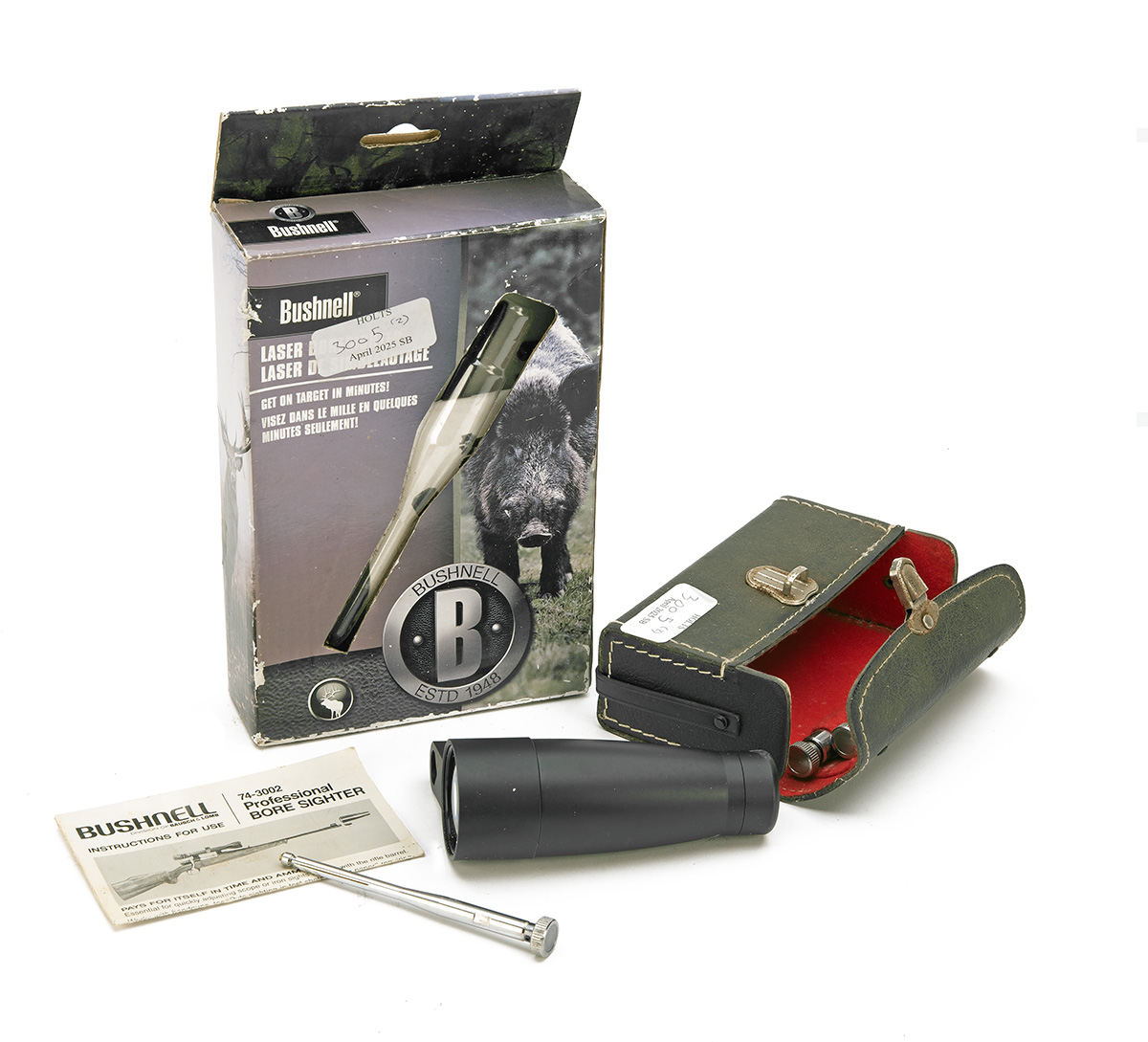 TWO 'BUSHNELL' BORE SIGHTERS IN CASES, 'BUSHNELL' laser boresighter for .22-.50 calibre in original box (untested), 'BUSHNELL' professional bore sighter in original carry case (2)