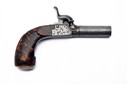 A 40-BORE PERCUSSION MICRO-RIFLED MUFF-PISTOL, UNSIGNED, no visible serial number, in a later case,