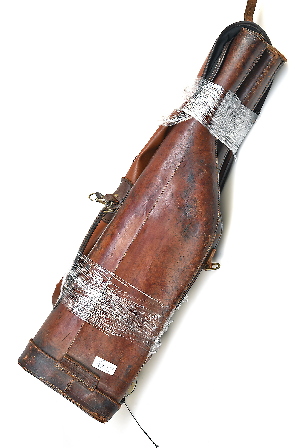 TWO LEATHER LEG-OF-MUTTON GUNCASES, together with a gunslip (3)