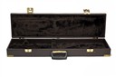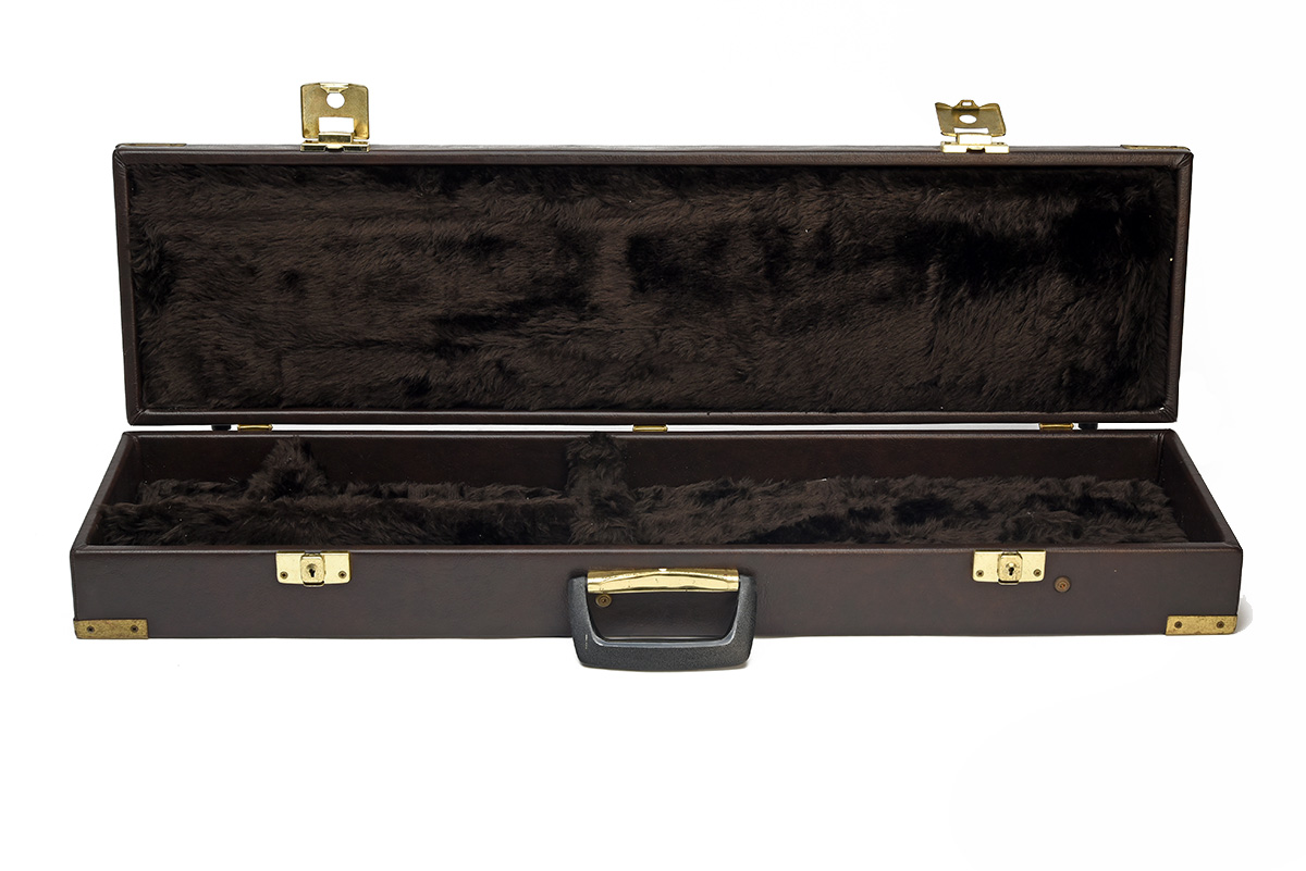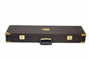 A BRASS-CORNERED SINGLE LEATHER OVER AND UNDER GUNCASE,