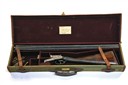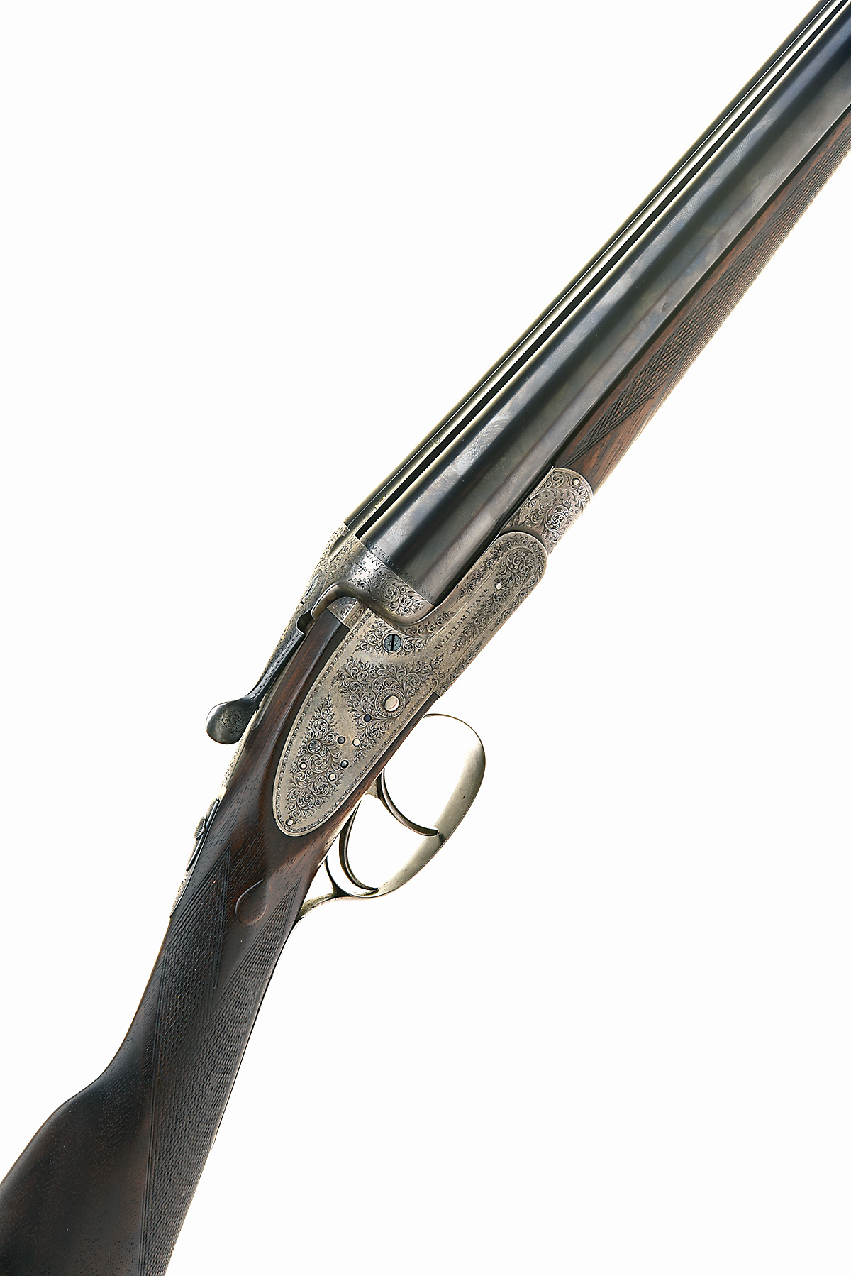 WILLIAM EVANS 12-BORE (CROSSOVER) SIDELOCK EJECTOR, serial no. 13396, for 1924, 30in. nitro barrels, rib engraved 'WILLIAM EVANS. 63. PALL MALL. ST. JAMES'S. LONDON.', and gold-inlaid '1', 2 1/2in. chambers, bored approx. imp. cyl. and 1/4 choke, treble-grip action, removable striker discs, toplever gold-inlaid '1', automatic safety with gold-inlaid 'SAFE' detail, border and partial scroll engraving, retaining traces of original colour-hardening and finish, 15 1/4in. crossover stock (metalwork swept) including 5/8in. wooden extension, weight 6lb. 9oz., in its green canvas and leather case