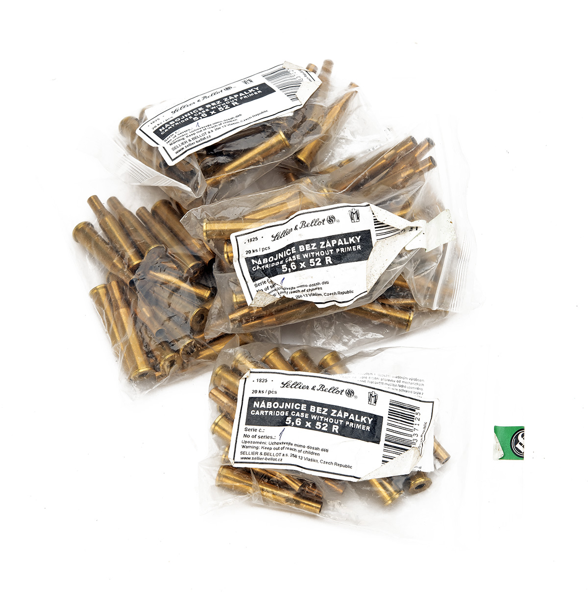 ONE HUNDRED UNUSED SELLIER & BELLOT 5.6X52R UNPRIMED BRASS CASES (5)
