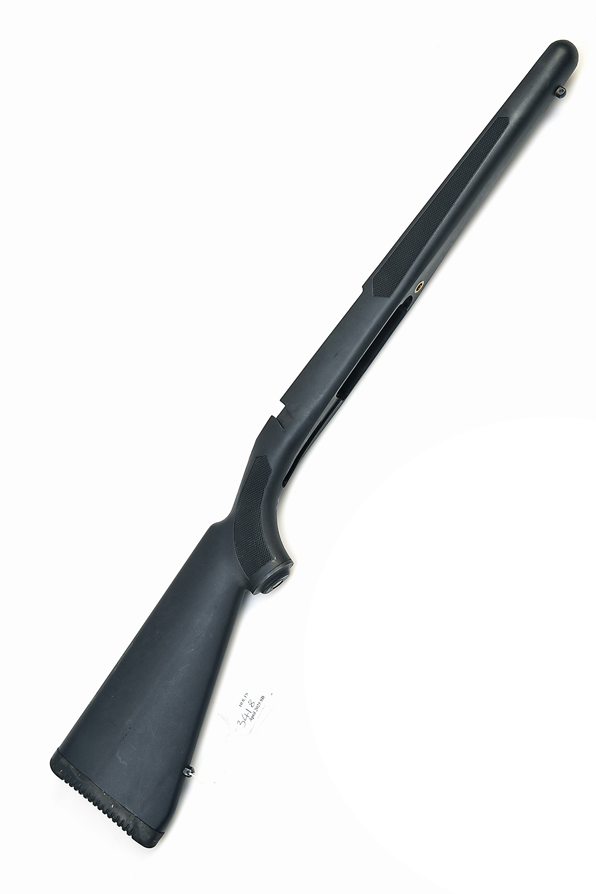 A LIGHTLY 'RUGER M77' BOLT ACTION SYNTHETIC RIFLE STOCK IN BLACK