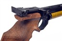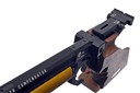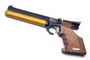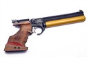 A CASED .177 STEYR MATCH LP5 PRE-CHARGED PNEUMATIC AIR PISTOL, serial no. 803836, with shrouded 9 1/4in. barrel, micro adjustable sights, aperture for magazine (three included), anatomical right hand walnut grip and gold-coloured air-reservoir (with spare), in an abs plastic case with further accessories (untested)