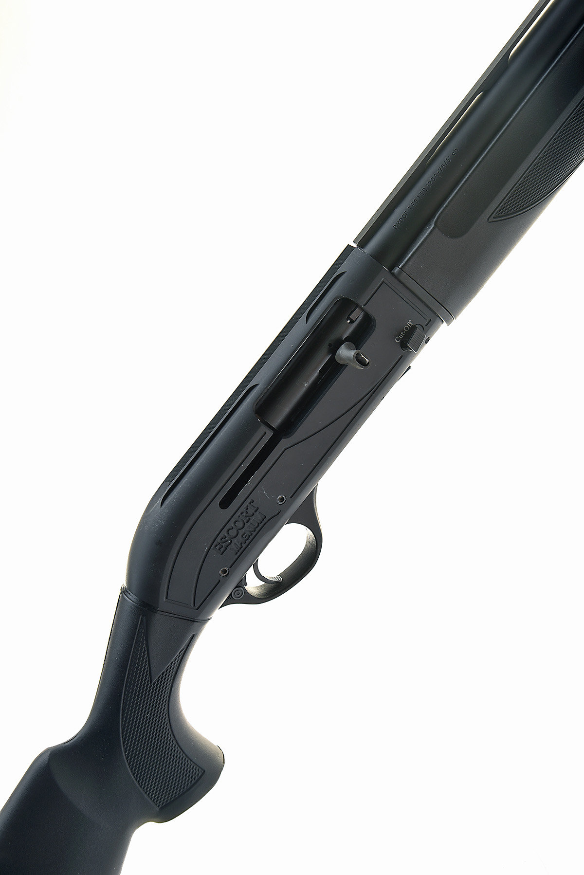 HATSAN 12-BORE (3IN.) 'ESCORT MAGNUM' SEMI-AUTO SHOTGUN, serial no. 441119, for 2016, restricted magazine, 28in. high-performance steel-shot proved nitro barrel with 7mm ventilated matt rib, 3in. chamber, multichoke (with spares), manual push-button safety, magazine cut-off switch, 14 3/4in. synthetic pistolgrip stock including ventilated rubber recoil pad, in its makers carton