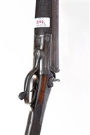 JOHN HARTRIDGE 10-BORE (2 7/8IN.) ROTARY-UNDERLEVER HAMMERGUN, no visible serial number, circa 1870, 32 3/4in. black powder only reproved damascus barrels, rib engraved 'JOHN HARTRIDGE', 2 7/8in. chambers, bored approx. true and imp. cyl. choke, Jones patent rotary underlever, carved serpentine fences, non-rebounding locks, border and partial scroll engraving with game scenes, 14 1/2in. stock (crack at hand) including steel buttplate, weight 10lb. 9oz., in a slip