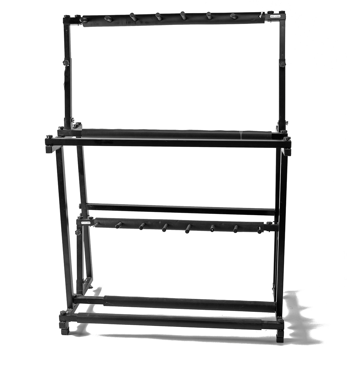 A TWO TIER ADJUSTABLE HEIGHT GUNRACK, capacity for 14 guns