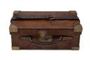 A BRASS-CORNERED LEATHER CARTRIDGE MAGAZINE,
