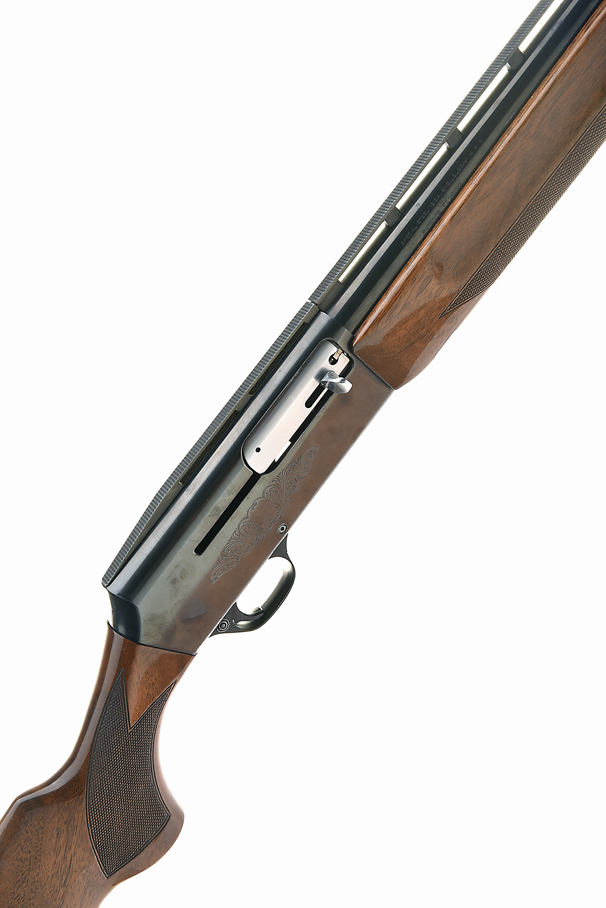 BROWNING 12-BORE '2000' SEMI-AUTO SHOTGUN, serial no. 19339641RT, for 1976, restricted magazine, 26in. nitro barrel with 9mm ventilated file-cut rib, 2 3/4in. chamber, bored approx. 1/4 choke, manual push-button safety, blacked action with acanthus scroll engraving, 14 3/4in. pistolgrip stock with trademark buttplate
