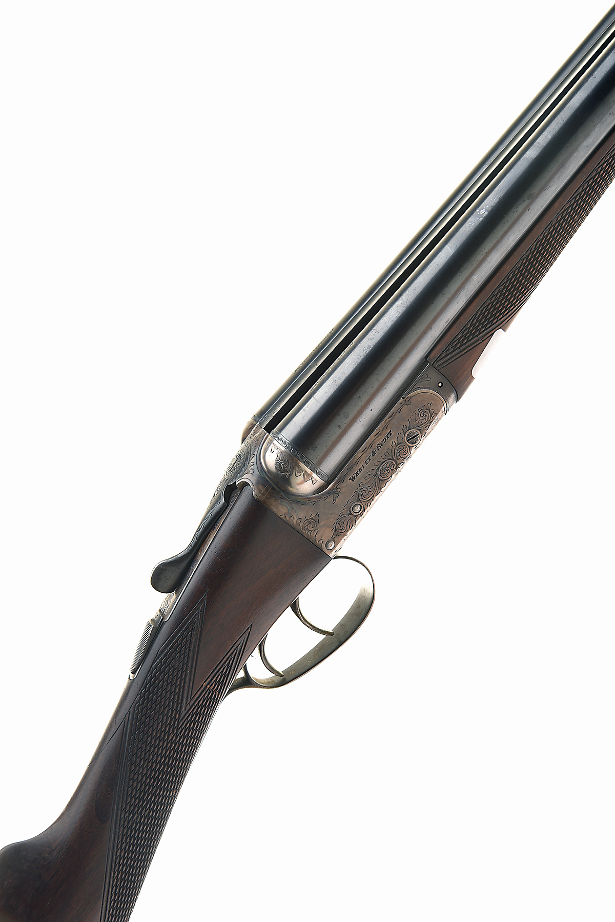 WEBLEY & SCOTT 12-BORE 'MODEL 700' BOXLOCK EJECTOR, serial no. 143313, dated 1973, 26in. nitro barrels, 2 3/4in. chambers, bored approx. 1/4 and 3/4 choke, automatic safety, border and partial scroll engraving, retaining traces of original colour-hardening and finish, 14 3/4in. stock, weight 6lb. 3oz., ejectors at fault