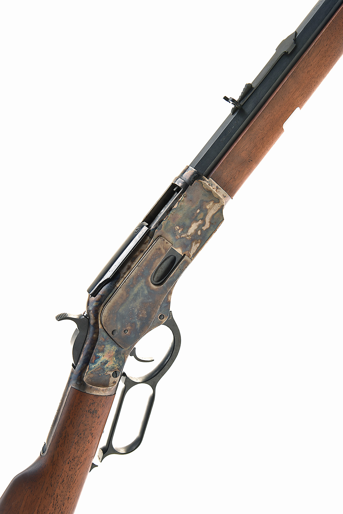 A. UBERTI .44-40 'MOD. 73 SPORTING' LEVER-ACTION REPEATING RIFLE, serial no. 46841, for 1982, 24in. octagonal barrel, adjustable open rear sight, dovetailed blade fore-sight, full-length fixed tubular magazine, sliding dust cover, colour-hardened slab-sided action, 12 3/4in. stock including crescent steel buttplate, weight 8lb. 1oz.