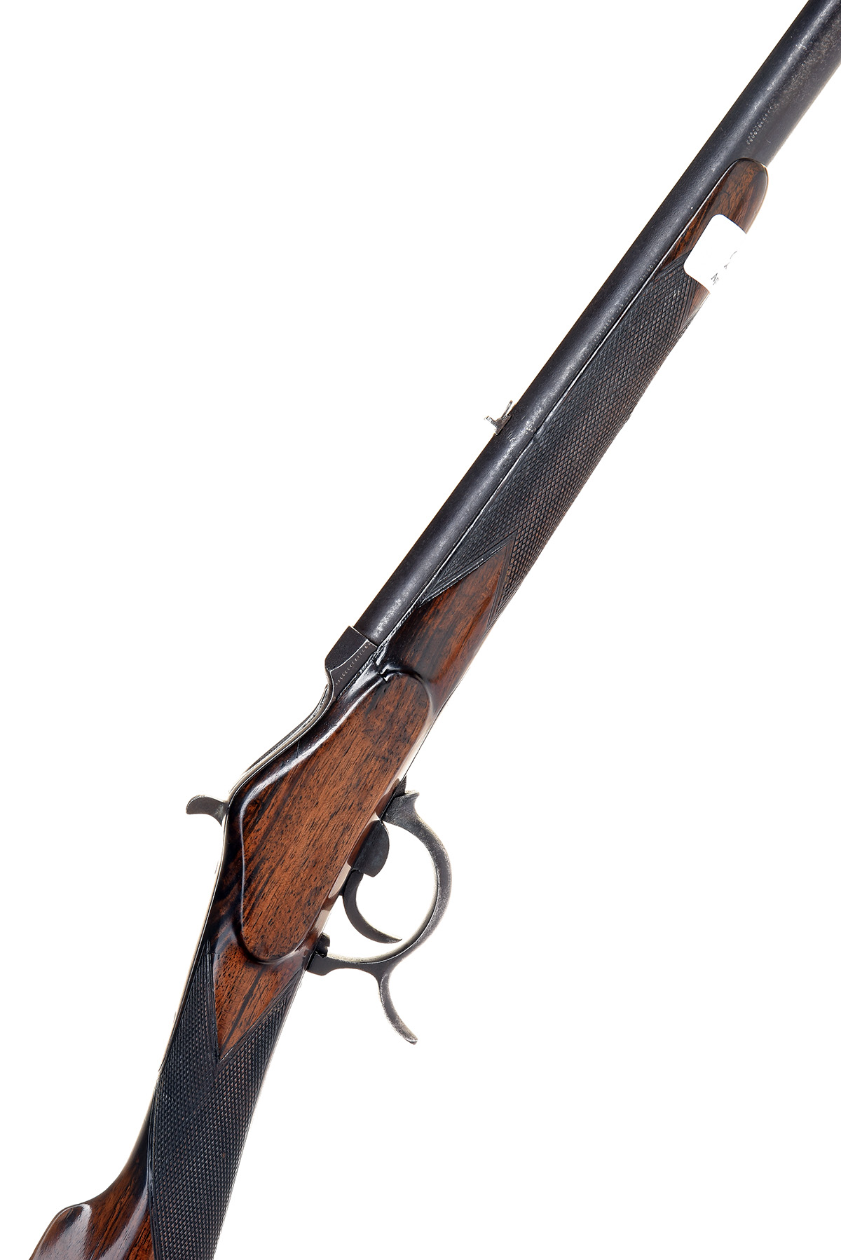 A .380 (L/R) SINGLE-SHOT ROOK& RABBIT RIFLE SIGNED D. WALES, GREAT YARMOUTH, no visible serial number, probably of Belgian origin, circa 1890, with round 28 1/4in. barrel, flat sighting plane signed 'D. WALES, REGENT ST. GT. YARMOUTH', shallow Martini-style action and chequered walnut half-stock