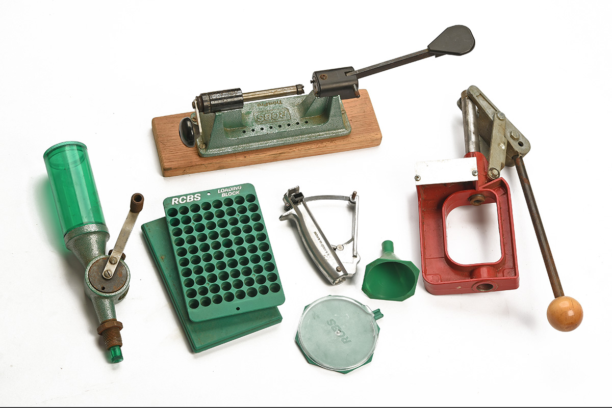 A QUANITY OF RCBS AND LEE RELOADING TOOLS AND RELATED ITEMS,
