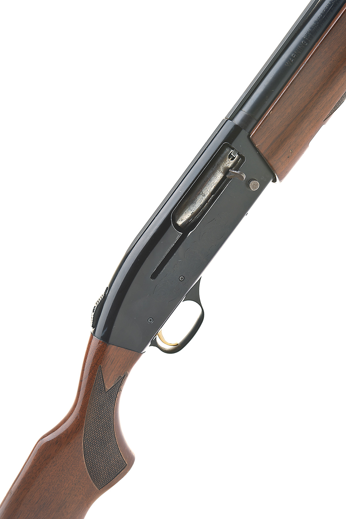 MOSSBERG 12-BORE (3IN.) 'MODEL 9200' SEMI-AUTO SHOTGUN, serial no. SE3134, circa 1995, restricted magazine, 28in. nitro barrel with 9mm ventilated matt rib, 3in. chamber, multichoke (no spares), manual top tang safety, gold-washed trigger, blacked action with partial scroll engraving, 14in. pistolgrip stock including ventilated rubber recoil pad, fore-end wood split