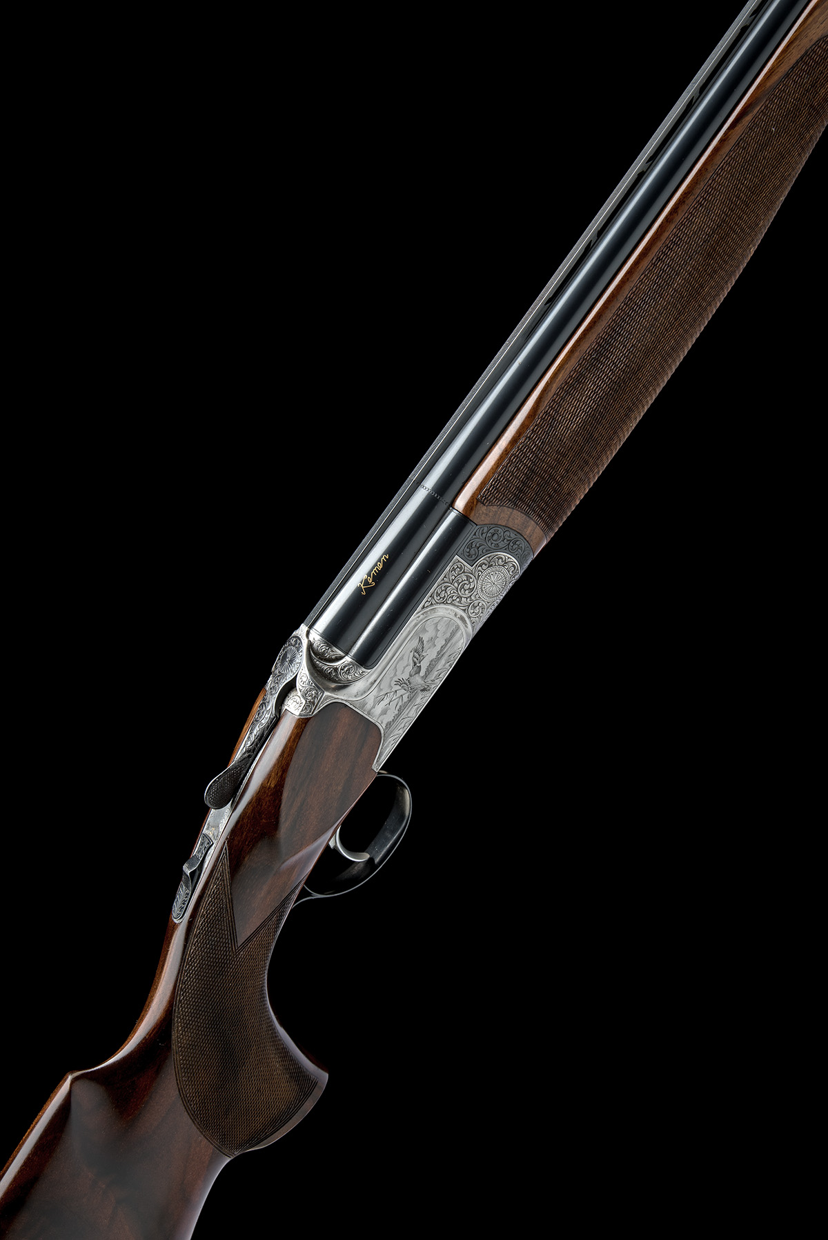 dated 2001, 30in. nitro barrels with 5mm ventilated matt top-rib, 2 3/4in. chambers, bored approx. imp. cyl. in both, hold-open toplever, automatic safety, acanthus scroll engraving surrounding panels finely engraved in the bulino style with pheasant, mallard and partridge, triggerplate engraved 'CA II', 14 1/4in. figured pistolgrip stock, weight 7lb. 9oz., in a canvas and leather case